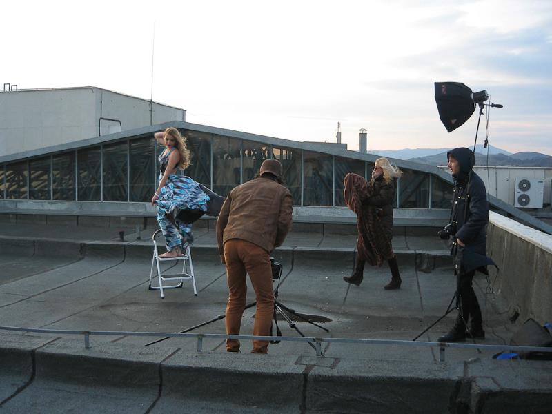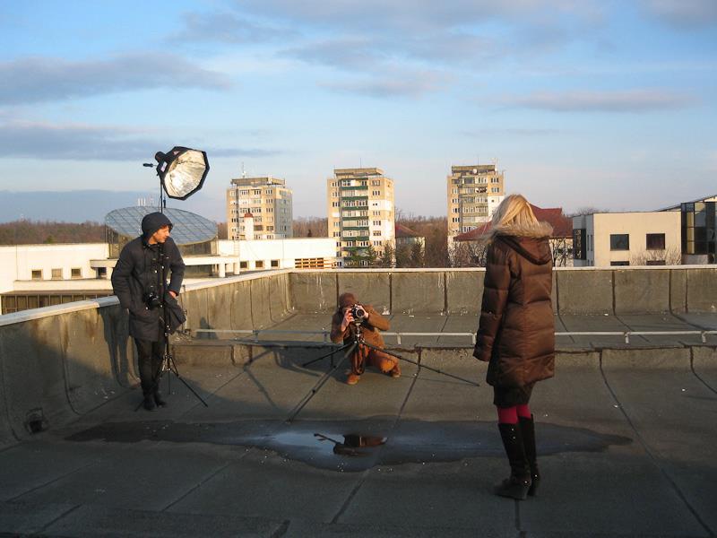 Atelierul a culminat insa, intr-un mod triumfator cu un shooting pe acoperisul bibliotecii. La doar 2 grade Celsius, frumoasele modele au pozat in rochii vaporoase, cu o lejeritate si cu o eleganta demna de invidiat. Desi un frig si un vant incredibil, toata echipa a lucrat exemplar.