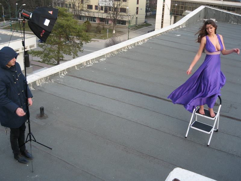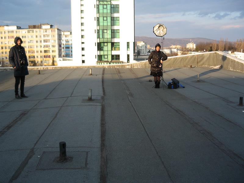 Shooting-ul de pe acoperis a fost realizat cu Triton-ul de la Photoflex, un kit versatil ideal pentru astfel de shooting-uri datorita dimensiunii reduse care ofera o portabilitate extraordinara, dar si a acumulatorului care poate declansa pana la 30.000 de flash-uri la putere minima, sau 750 la putere maxima, la o singura incarcare.