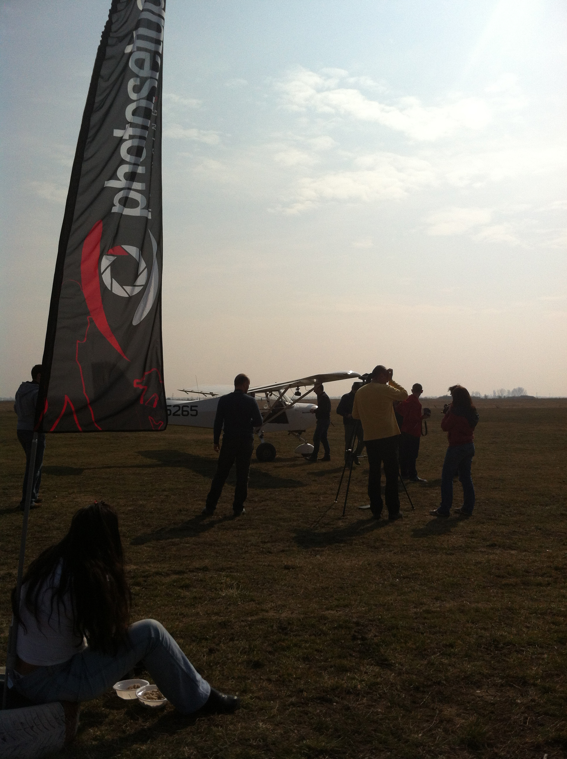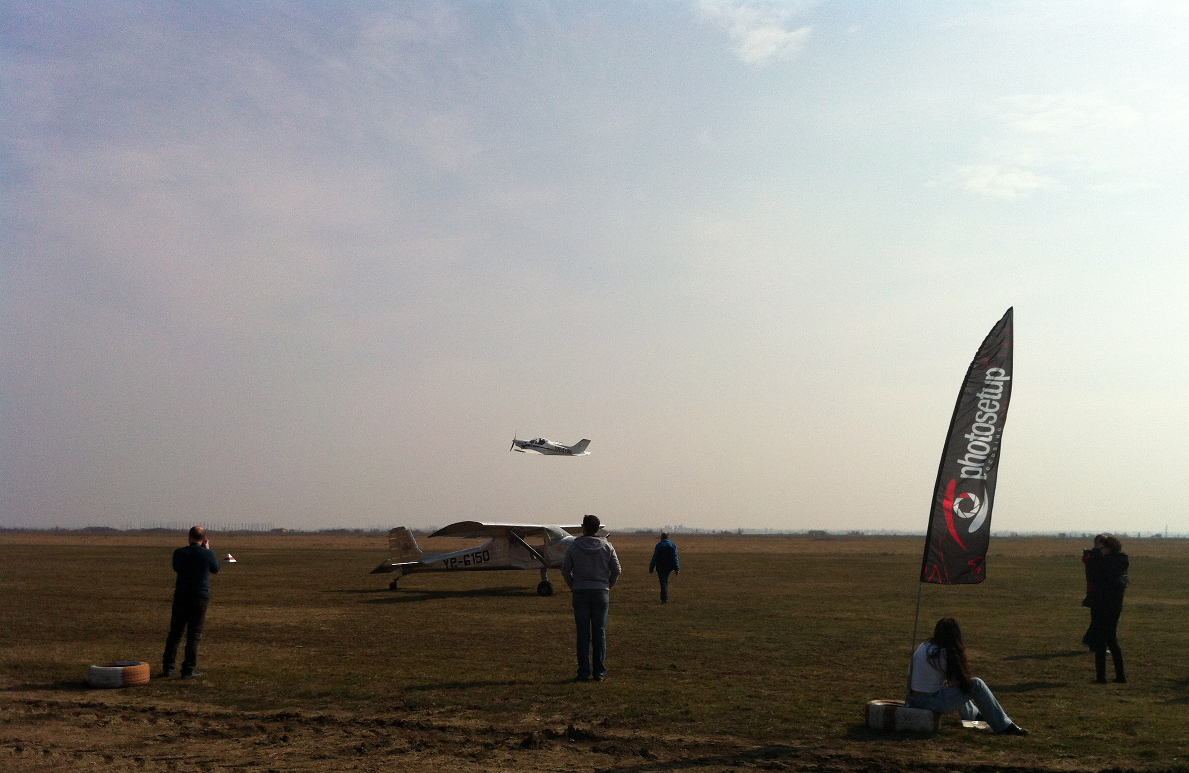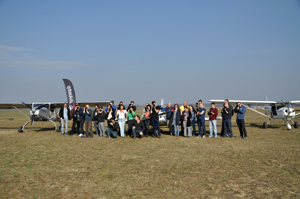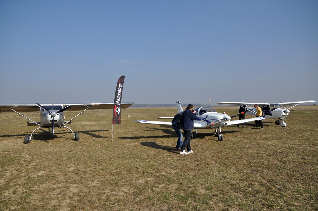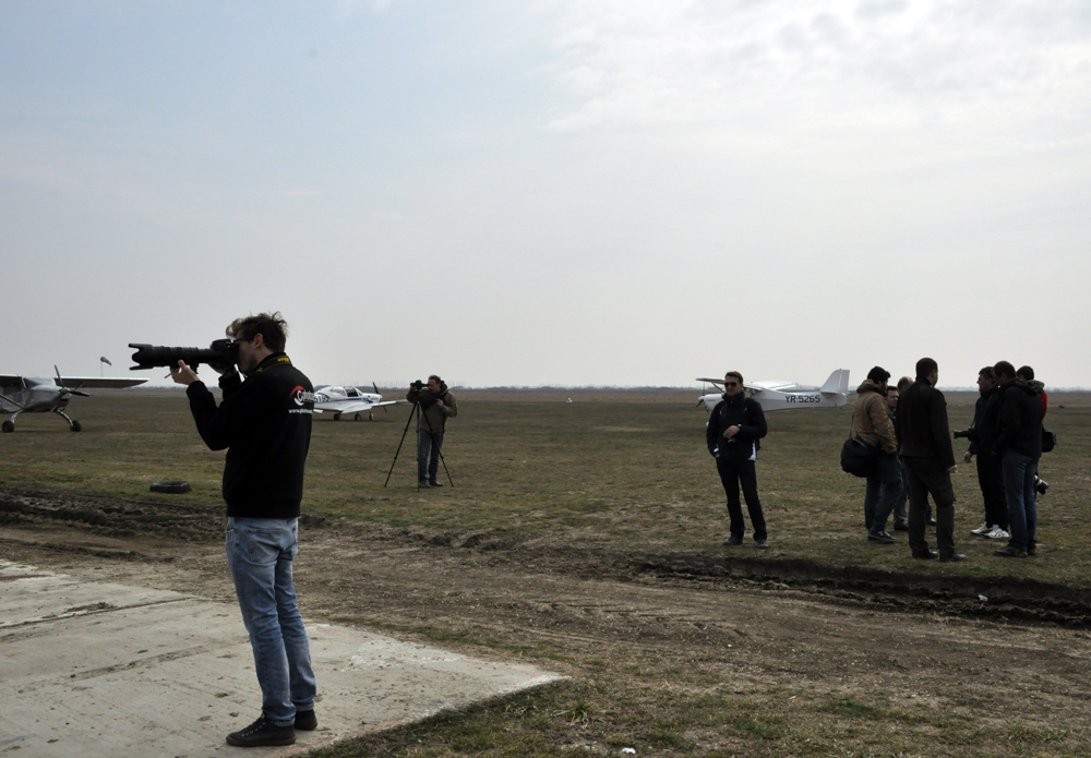 Un grup consistent de îndrăzneţi entuziaşti, pasionaţi de fotografie care aşteptau cu nerăbdare să zboare. Trei avioane care îşi turau motoarele şi executau deja câteva zboruri de ”încălzire”, în aşteptarea participanţilor.