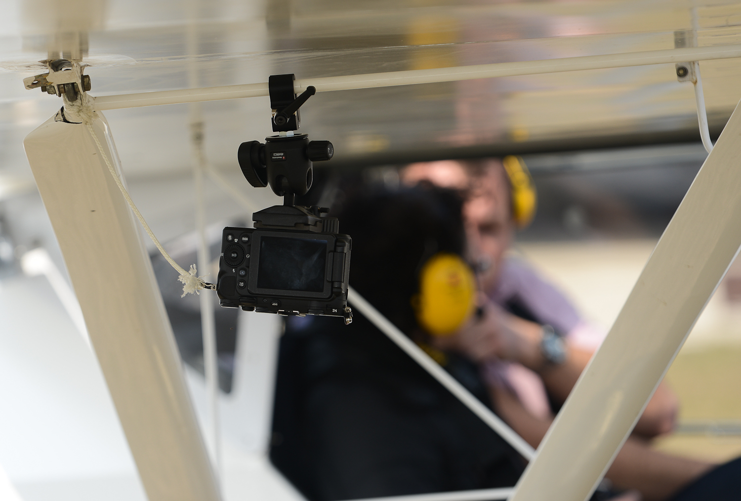 S-au făcut fotografii din toate locurile posibile şi chiar imposibile pentru că, sub aripa avionului principal, s-a montat un sistem de prindere Manfrotto [Nano Clamp 386BC] cu un cap foto Manfrotto 494RC2 iar pe el s-a instalat un aparat foto compact care a făcut fotografii fiecărui participant în zbor, în cockpit.